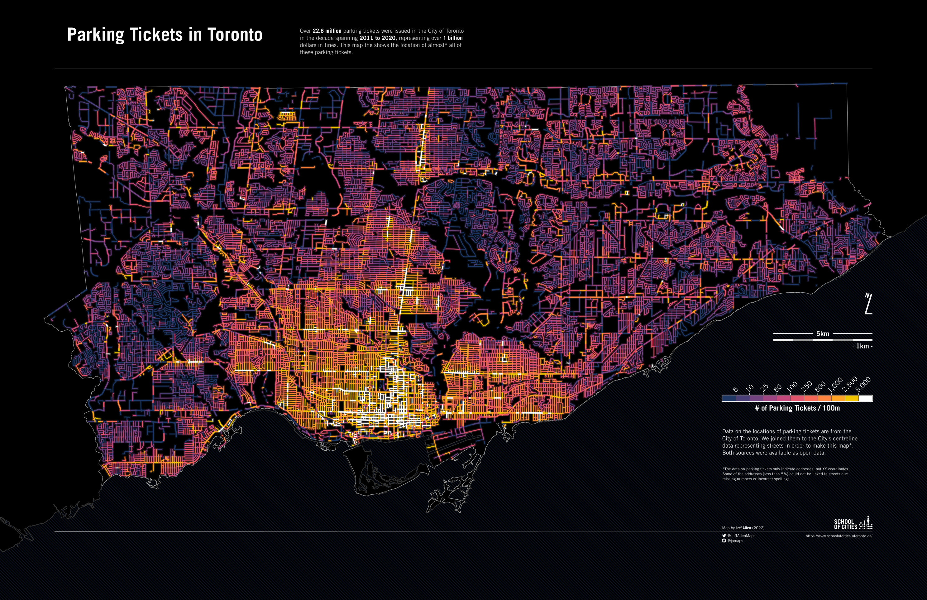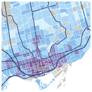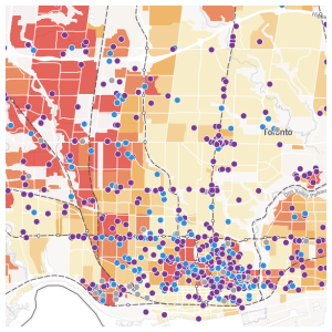 I live in Toronto and I occasionally come across a super interesting dataset that I want to map. Below are a few examples from the past couple years or so. Some of these were digressions from research projects, some were just for fun :)